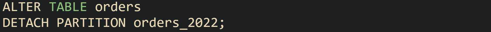 After that statement, orders_2022 turns into a regular table that holds all rows from 2022. DBAs can move that table into an archive schema, take a separate backup, or move it to a different server through dump and restore tools.