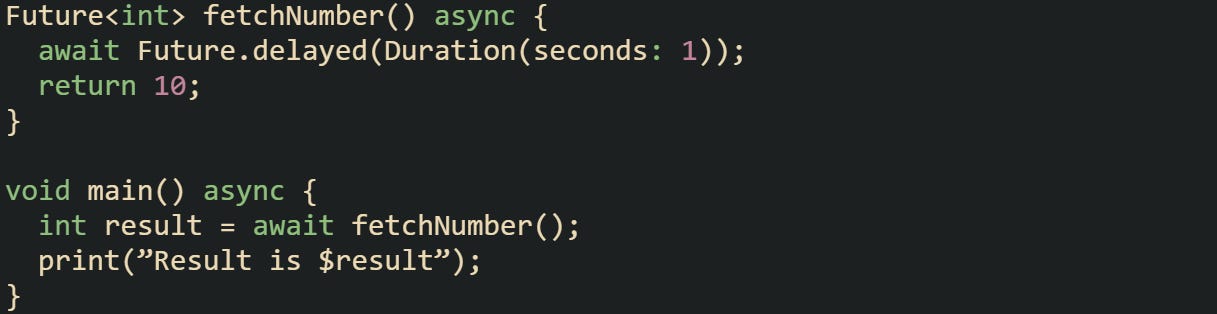 Concurrency in Dart avoids the common issues of shared memory. Instead, Dart uses isolates. Each isolate has its own memory space and can’t directly change objects in another. The way isolates talk to each other is through messages passed with ports.