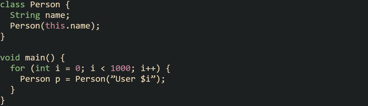 In this loop, thousands of temporary Person objects are created. Most are short-lived and discarded soon after, so they’re collected in the young generation. Only objects that persist over time get promoted. This keeps memory usage steady without requiring manual clean-up.