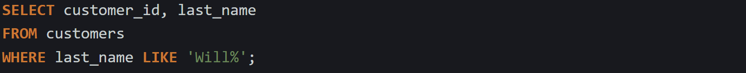 When you know how a string starts, the pattern can be very efficient. Let’s say you’re searching for customers whose last names begin with “Will”. You’d write: