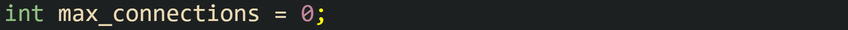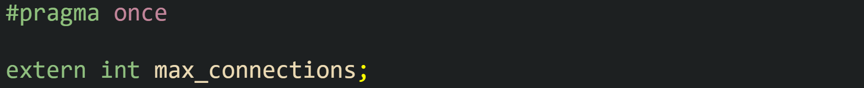 Two definitions of max_connections now appear at file scope in the same translation unit, which violates the C rule that an object definition at that scope must not occur twice in one translation unit. Most compilers report a redefinition error at that point.