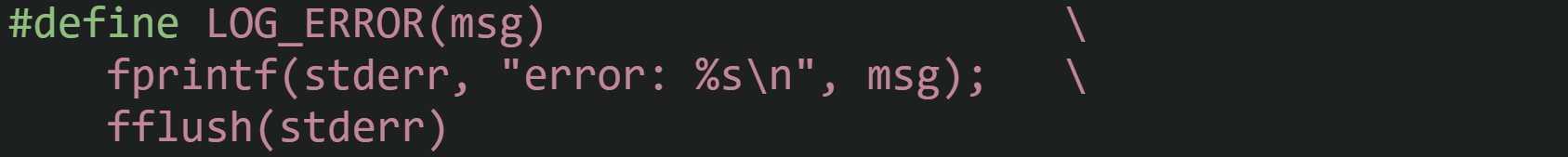 The macro body above is viewed as one logical sequence of tokens even though it spans several editor lines. That is why a missing backslash can break a macro in confusing ways, because the preprocessor sees a new line where you expected continuation.