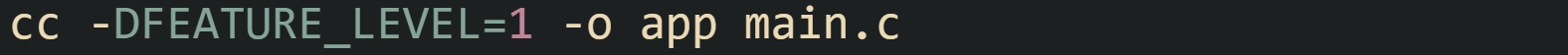 That command sets FEATURE_LEVEL inside the preprocessor environment before any source lines are read. It becomes possible to flip features or whole code paths from the build system or from different build configurations in an IDE without editing the C files.