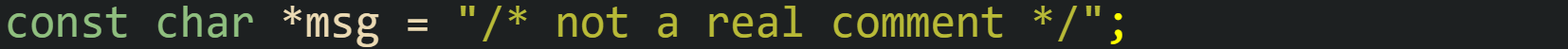 Comment markers inside string literals are preserved, because those characters belong to the literal and not to the comment system.