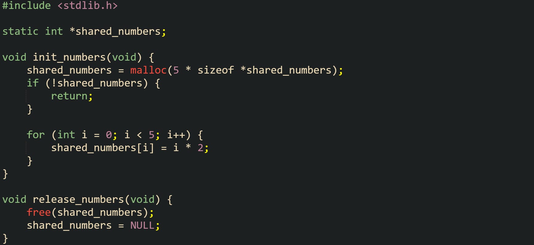 ![#include <stdlib.h> static int *shared_numbers; void init_numbers(void) { shared_numbers = malloc(5 * sizeof *shared_numbers); if (!shared_numbers) { return; } for (int i = 0; i < 5; i++) { shared_numbers[i] = i * 2; } } void release_numbers(void) { free(shared_numbers); shared_numbers = NULL; } #include <stdlib.h> static int *shared_numbers; void init_numbers(void) { shared_numbers = malloc(5 * sizeof *shared_numbers); if (!shared_numbers) { return; } for (int i = 0; i < 5; i++) { shared_numbers[i] = i * 2; } } void release_numbers(void) { free(shared_numbers); shared_numbers = NULL; }](https://substackcdn.com/image/fetch/$s_!5b2g!,w_1456,c_limit,f_auto,q_auto:good,fl_progressive:steep/https%3A%2F%2Fsubstack-post-media.s3.amazonaws.com%2Fpublic%2Fimages%2F6de79d5c-8b02-4052-b56f-a2646beb1d0e_1732x796.png)
