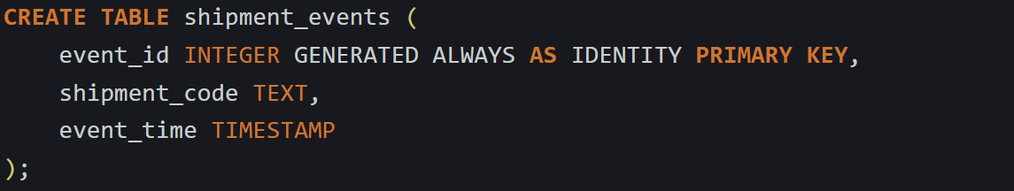 For example, if you’re storing shipment events and expect to trace the history by event ID, a missing ID might break that trace. Suppose your table is set up like this: