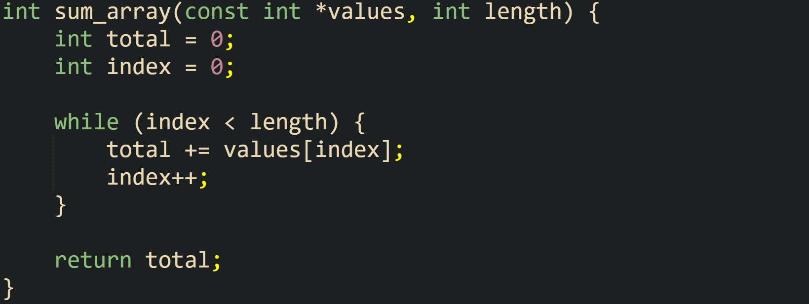 ![int sum_array(const int *values, int length) { int total = 0; int index = 0; while (index < length) { total += values[index]; index++; } return total; } int sum_array(const int *values, int length) { int total = 0; int index = 0; while (index < length) { total += values[index]; index++; } return total; }](https://substackcdn.com/image/fetch/$s_!K-T2!,w_1456,c_limit,f_auto,q_auto:good,fl_progressive:steep/https%3A%2F%2Fsubstack-post-media.s3.amazonaws.com%2Fpublic%2Fimages%2F1569717a-cdb3-419c-942f-cff29683b30f_1639x616.png)