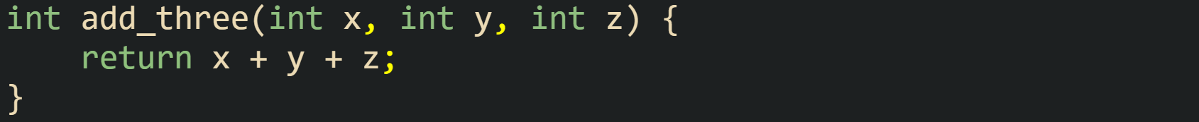 Take this short function with three integer parameters, as it gives a good point of reference: