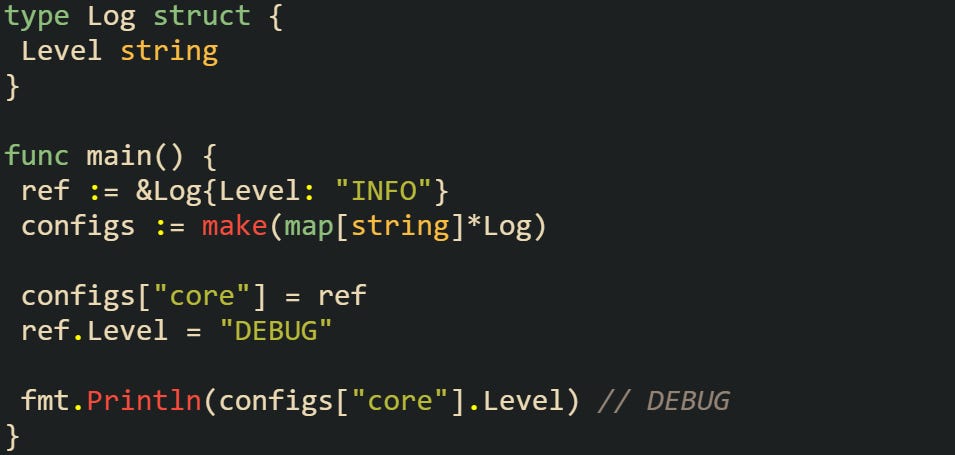 This is because nothing was copied. The map holds the pointer, and the pointer gives you access to the real struct. That behavior becomes helpful when your program needs to update values across different layers without juggling new assignments or tracking sync issues.