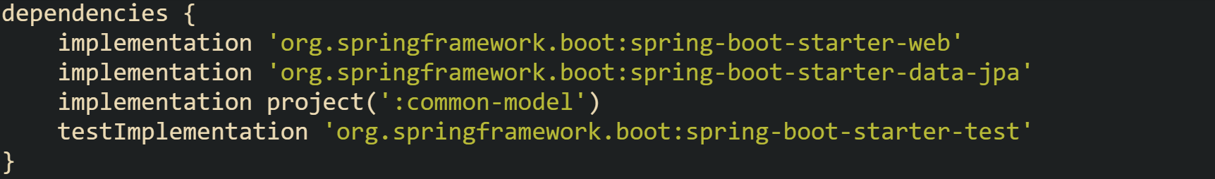 That contrast keeps the heavy servlet stack and JPA stack in the service module where they belong, while keeping the shared module focused on core Spring support and Jackson. Compilation of the shared module then processes fewer classes, and every service that depends on it inherits that smaller footprint.