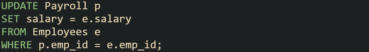 Consider a table of employees and a table of payroll records. You want to copy updated salary values into the payroll table.