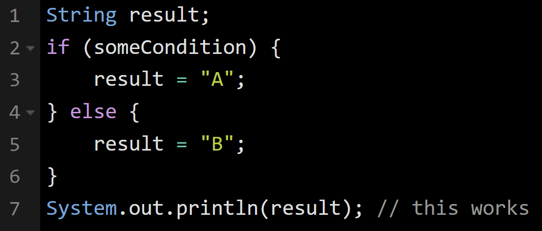 don’t live beyond the block they’re in. You can’t use them later. It might seem obvious once you’ve seen it, but most people run into something like this the first time they deal with scope.