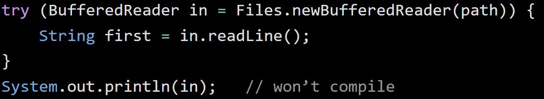 Java Scope, Part 4 — try-with-resources and Catch Blocks