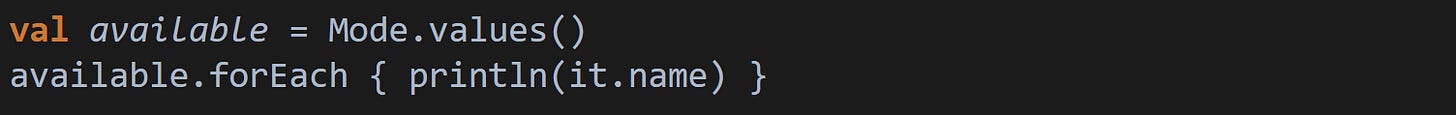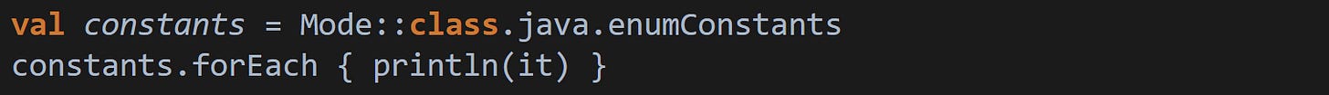 in Kotlin code. There’s nothing Kotlin-specific in the final compiled output beyond the source annotations and possibly some metadata. At runtime, the enum behaves just like any other JVM enum. Kotlin leans into that design and builds the rest through the compiler’s front-end rules. All of it ends up inside the class, even if you never see it written.