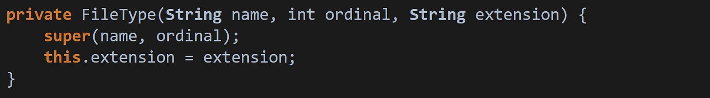 Each constant here passes a different string to the constructor. That string is stored in the extension