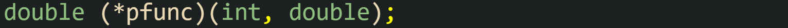This starts with the identifier pfunc surrounded by (* ), so *pfunc has function type that takes an int and a double and returns double. That means pfunc is a pointer to such a function. Without the parentheses, a declaration double *pfunc(int, double); would describe a function returning double * instead, which is very different.