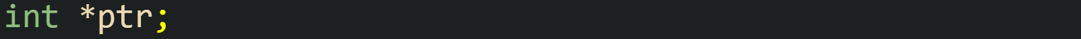 Here, the base type is int, and the * attached to the declarator name says that ptr holds the address of an int. The star belongs to the declarator, not to the base type, which matters when more than one variable appears in the same declaration.