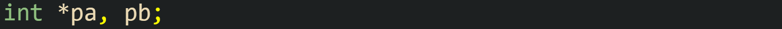 This declares pa as a pointer to int, while pb is a plain int. Both share the same base type, and only the star attached to pa changes its meaning. Many code bases avoid combining pointer and nonpointer variables in one declaration to keep the meaning obvious at a quick look.