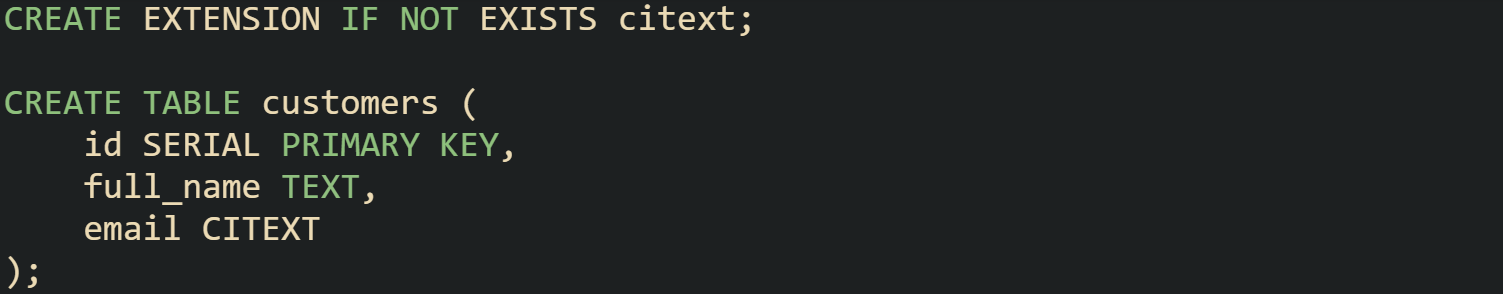 PostgreSQL relies more on column level collations or ICU based definitions set at table creation time, and on functional strategies described later. Expression collations exist but tend to play a smaller part in day to day case insensitive search compared with MySQL and SQL Server.