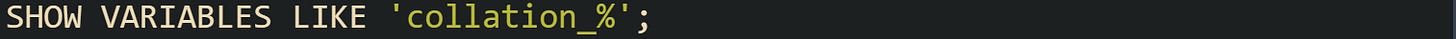 Take this MySQL example to inspect default collation: