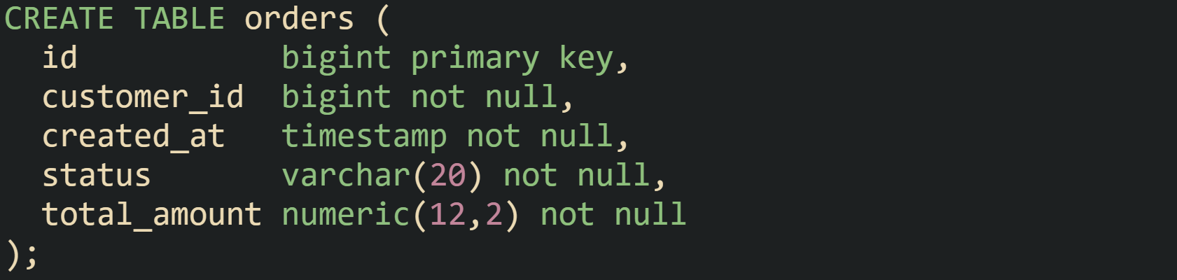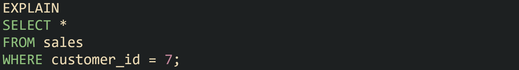 Without a supporting index, PostgreSQL is likely to report a Seq Scan on orders node, and MySQL will tend to show type = 'ALL' for the orders table in its EXPLAIN output. The engine estimates that it has to inspect many rows, and the plan reflects that by picking a full table walk as the access method.