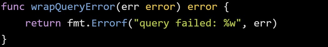 You can extend this idea to other layers too. One helper per boundary is often enough to keep logs and traces from turning into a guessing game. It’s also a good place to switch to structured error types if your system needs them later. Instead of changing a hundred scattered error strings, you just update the helper.