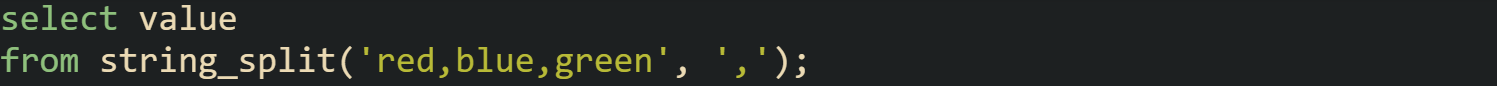 SQL Server keeps things short. The function reads a value, breaks it apart on a separator, and returns a table with one column called value.