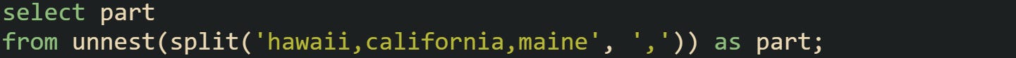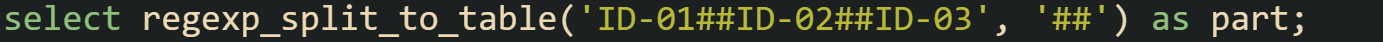 ![with recursive t as ( select regexp_substr('p1|p2 | p3', '[^| ]+', 1, 1) as part, 1 as n union all select regexp_substr('p1|p2 | p3', '[^| ]+', 1, n + 1), n + 1 from t where regexp_substr('p1|p2 | p3', '[^| ]+', 1, n + 1) is not null ) select part from t; with recursive t as ( select regexp_substr('p1|p2 | p3', '[^| ]+', 1, 1) as part, 1 as n union all select regexp_substr('p1|p2 | p3', '[^| ]+', 1, n + 1), n + 1 from t where regexp_substr('p1|p2 | p3', '[^| ]+', 1, n + 1) is not null ) select part from t;](https://substackcdn.com/image/fetch/$s_!Z8L5!,w_1456,c_limit,f_auto,q_auto:good,fl_progressive:steep/https%3A%2F%2Fsubstack-post-media.s3.amazonaws.com%2Fpublic%2Fimages%2F076e4658-8081-40e2-b9e8-4688d94e3ef1_1480x376.png)