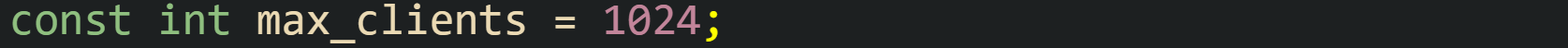 That declaration sets up max_clients as an integer with static storage duration whose value is fixed from C code perspective. Any line that tries to assign a new value such as max_clients = 200; violates the type rules, so a conforming compiler must issue a diagnostic.
