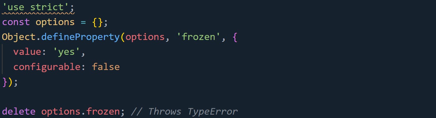 This helps catch bugs earlier. It’s easy to forget that a property was marked non-configurable, especially in shared code or reused modules.
