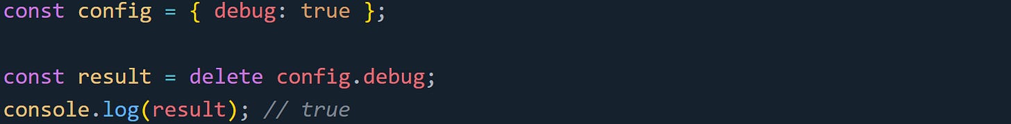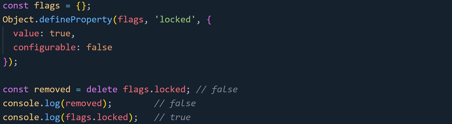 That works, but it’s not something you’d normally want in well-structured code. It’s more of a tool for debugging or testing than everyday use. Still, it’s helpful to know where delete silently fails or throws so you don’t misread the behavior.