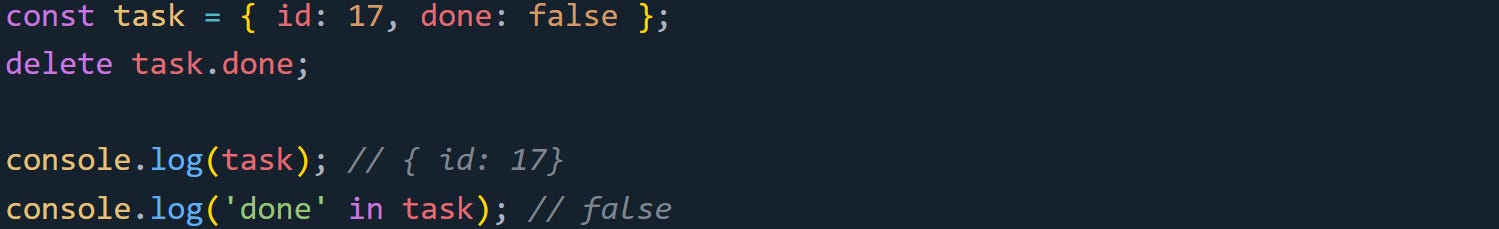 Deleting properties removes data, but it leaves behind traces the JavaScript engine has to work around. Most of the time, you won’t notice the effect with small scripts or one-off deletions, but when you’re working with a large number of objects or repeating operations frequently, the extra cost becomes harder to ignore. It’s the shape changes and memory shifts that add up behind the scenes.